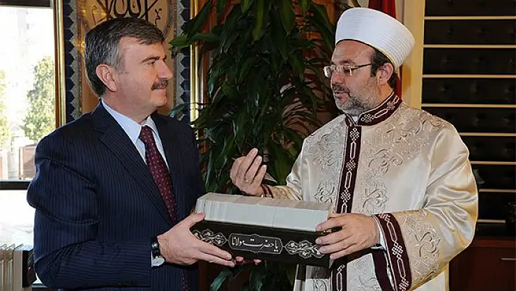 Diyanet İşleri Başkanı Prof. Dr. Mehmet Görmez, Konya Büyükşehir Belediye Başkanı Tahir Akyürek’i ziyaret etti. Ziyaretten duyduğu memnuniyeti dile getiren Büyükşehir Belediye Başkanı Tahir Akyürek, Konya’nın tarihte Anadolu’nun Medresesi olarak anılmış, Anadolu’daki kutup şehirlerden biri olduğunu söyledi. Konya’yı tarihteki misyonuna ulaştırmak için gayret gösterdiklerini kaydeden Başkan Akyürek, “Tarihi eserlerimizin tamamının yeniden tarihteki anlamıyla kullanıma sunulmasını arzu ediyoruz. Bizden sonraki kuşaklara taşınmasını arzu ediyoruz” dedi. Diyanet İşleri Başkanlığı ile birlikte camilere hizmet etmeye gayret ettiklerini, tarihi camilerin restorasyonuna, camilerin çevresinin düzenlenmesine çaba gösterdiklerini dile getiren Başkan Akyürek, “Konya’mızdaki tüm ibadethanelerin içme-kullanma sularının ücretsiz olmasıyla ilgili, kanunun bize verdiği yetkiyle geçtiğimiz aylarda Meclis kararı altına aldık. Bütün bu hizmetler insanlarımızın maddi ve manevi ihtiyaçlarının karşılanmasına yöneliktir” diye konuştu. Diyanet İşleri Başkanı Prof. Dr. Mehmet Görmez ise, pek çok İslam filozofunun her şehrin kendine özgü ruhu olduğunu söylediğini belirterek, Türkiye’de ruhu olan şehirler kategorisinde Konya’nın çok önemli bir yerde bulunduğunu, ruhu olan bir şehir olduğunu ifade etti. Şehirlerin ruhunun semaya yükselen gökdelenlerle değil, yürekler arasında kurulan merhamet şebekeleriyle ihya edileceğini kaydeden Görmez, “Konya, ülkemiz ve İslam alemi için önemli bir merkez. Bizi ziyarete gelen tüm yabancı misafirlerimizin yolunu mutlaka Konya’dan geçiriyoruz. Sizler de her türlü misafirperverliği gösteriyorsunuz” dedi. Ziyaretin sonunda Başkan Akyürek, Diyanet İşleri Başkanı Görmez’e çini sikke, Hadis-i Şerif kartları ve Hazreti Mevlana’nın sözlerinin bulunduğu nasihat kartları hediye ederken Görmez de Başkan Akyürek’e Diyanet Yayınları’ndan çeşitli kitaplar hediye etti.