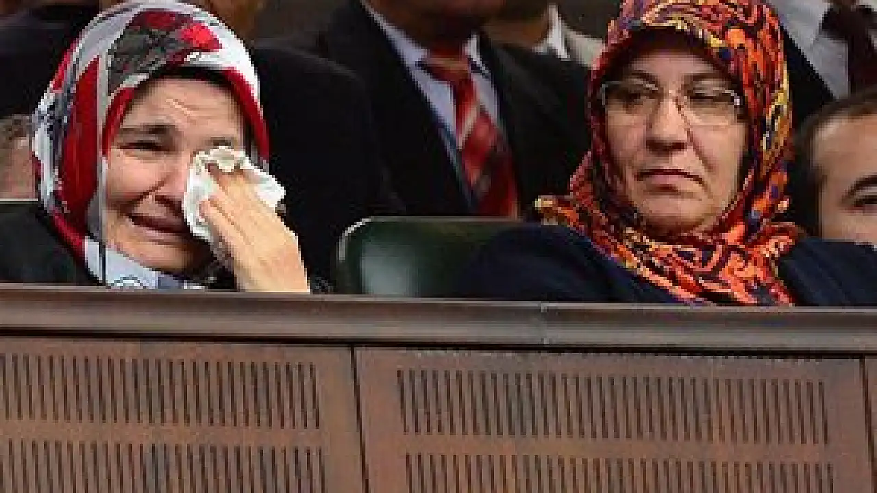 Erdoğan'ın konuşması sırasında AK Parti Grup Toplantısı'nı izleyen başörtülü kadırlar gözyaşlarına boğuldu.