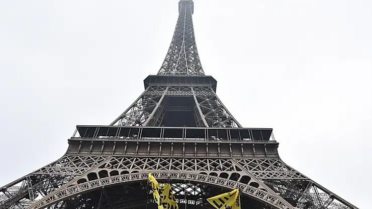 Greenpeace eylemcileri, Eyfel Kulesi'ne tırmanarak, Fransız Devrimi'nden bugüne kadar ülkenin temel değerleri olarak bilinen "Özgürlük, Eşitlik, Kardeşlik" yazılı pankart astı.