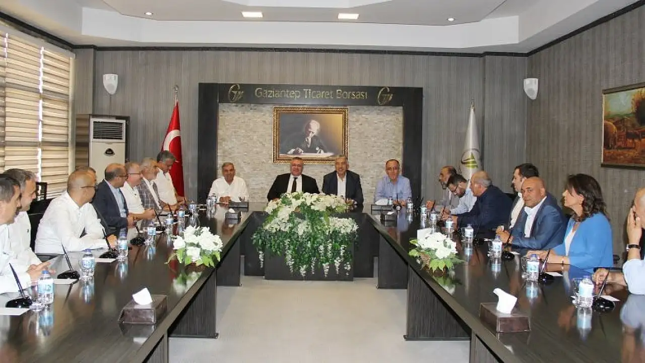 Konya Ticaret Borsası (KTB) Yönetim Kurulu Başkanı Hüseyin Çevik ve meclis üyelerinden oluşan heyet, Gaziantep Ticaret Borsasını (GTB) ziyaret etti. GTB Yönetim Kurulu Başkanı Mehmet Akıncı, Yönetim Kurulu Başkan Yardımcıları Ali Alagöz, Cesim Arslan, Meclis Üyeleri Mehmet İşbilir, Ali Yılmaz ve Genel Sekreter Özgür Bayram tarafından karşılanan Konya borsa temsilcilerine Gaziantep ekonomisi ve GTB’nin projeleri hakkında bilgiler verildi. Gaziantep'in tarıma dayalı gıda sanayinde ve ihracatta Türkiye'nin lokomotif illerinin başında geldiğini aktaran Akıncı, “Şehrimiz, 2018 yılında gerçekleştirdiği toplam 6 milyar 939 milyon dolar ihracatla yıllık bazda tarihinin en yüksek ihracat rakamına ulaştı. Türkiye’de en fazla ihracat yapan iller sıralamasında 6 sırada yer alan Gaziantep, 2019 yılının ilk 6 aylık diliminde ise 3 milyar 610 milyon dolarlık ihracat gerçekleştirdi” dedi. Gaziantep’in özellikle tarıma dayalı gıda sanayinde birçok sektörde ülke üretiminin ve ihracatının yarısından fazlasını tek başına karşıladığını aktaran Akıncı, bu ürünler arasında bulgur, un ve makarnanın ilk sıralarda yer aldığını ifade etti. KTB Yönetim Kurulu Başkanı Hüseyin Çevik ise konuşmasında, Konya tarımı, tarımsal ticareti ve hayvancılığı hakkında açıklamalarda bulundu. KTB’nin lisanslı depoculuk yatırımlarının yanı sıra tohumculuk Ar-Ge faaliyetlerinde bulunduğunu kaydeden Çevik, elektronik satış salonunun ise spot işlemlere hız, güven ve kalite getirdiğini, yıllık işlem hacimlerine de canlılık kazandırdığını söyledi.
