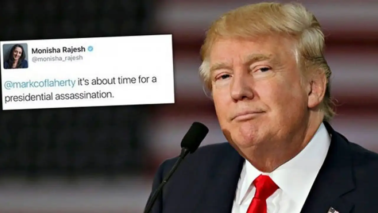 İngiliz yayın organı The Guardian'da editör olarak görev yapan Monisha Rajesh, sosyal medya hesabı Twitter'dan yaptığı paylaşımda, ABD'nin 45. başkanı seçilen Donald Trump'a yönelik suikast çağrısı yaptı.