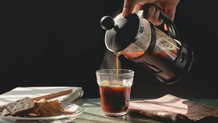 - Daha sonra kaynayan suyu da ekleyerek kahve ile suyun karışmasını bekleyin ve çok karıştırmamaya çalışın. Bu sırada French Press’in de pistonunu yavaşça aşağıya doğru bastırabilirsiniz.