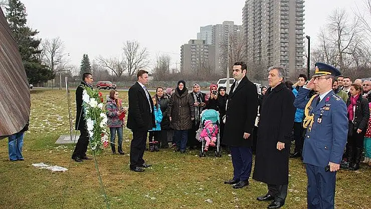 Gül, Ottawa’da Ulusal Başkent Komisyonu tarafından sergilenen İznik Çinileri’ni gezdikten sonra 1982 yılında Ermeni terör örgütü ASALA tarafından şehit edilen Askeri Ataşe Kurmay Albay Atilla Altıkat ve görevi başındayken öldürülen tüm diplomatların anısına dikilen Şehit Diplomatlar Anıtı’nı ziyaret etti. Anıta çelenk koyan Gül, saygı duruşunda bulundu.