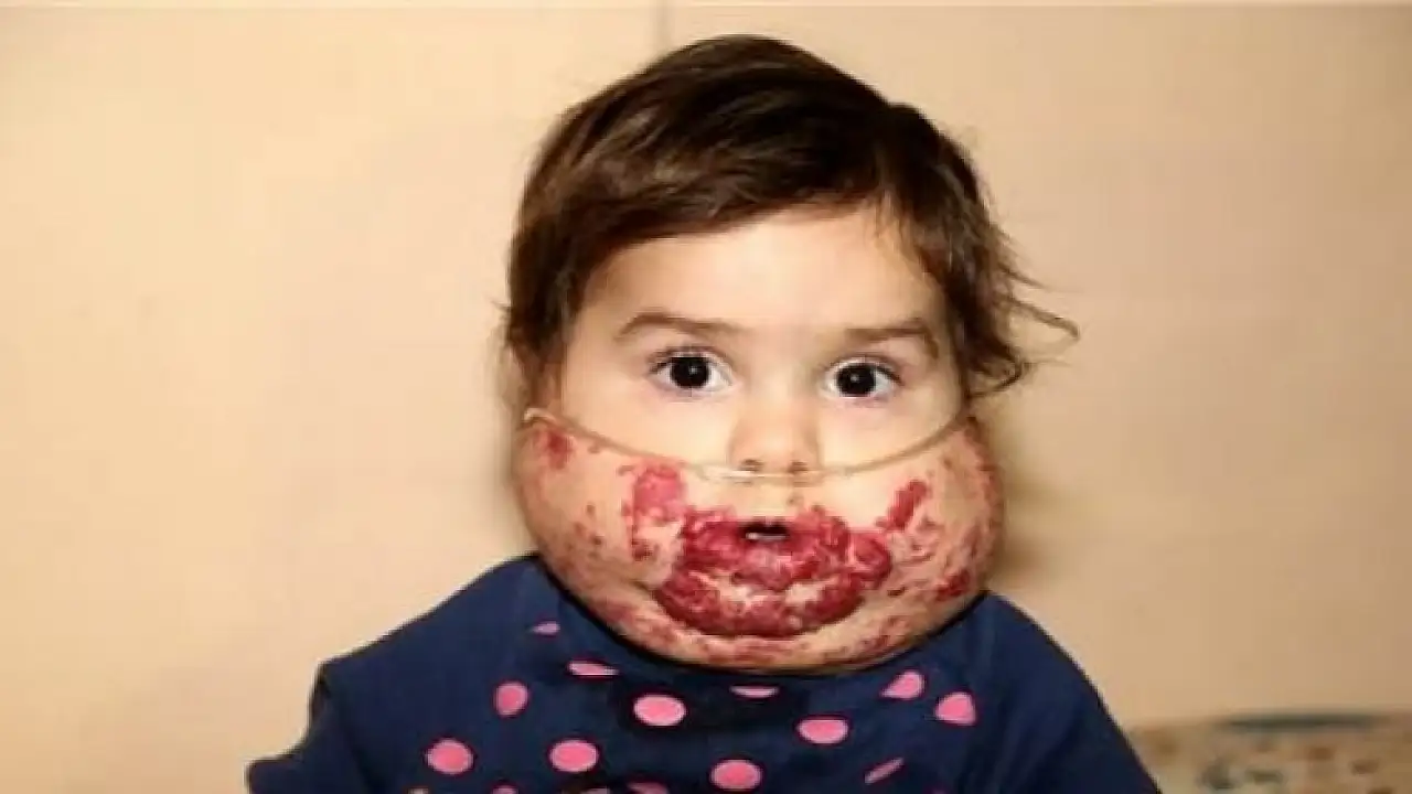 Şimdi 3 yaşında olan kız çocuğu, ağız çevresi, yüzü ve boynunun büyük bölümüne yayılan tümörlerin baskısı nedeniyle nefes almakta güçlük çekiyor.