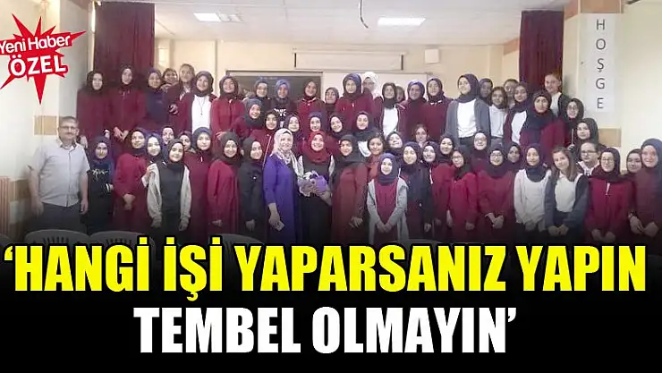 Yeni Haber Gazetesi Haber Müdürü Gülşen Yılmaz, Vakıfbank İmam Hatip Ortaokulu'nda söyleşiye katıldı. Yılmaz 'Gazetecilik zor bir meslek. Ama çevrenize bir bakın, herkesin yaptığı işte bir zahmet vardır. Size tavsiyem hangi işi yaparsanız yapın tembel olmayın' dedi.