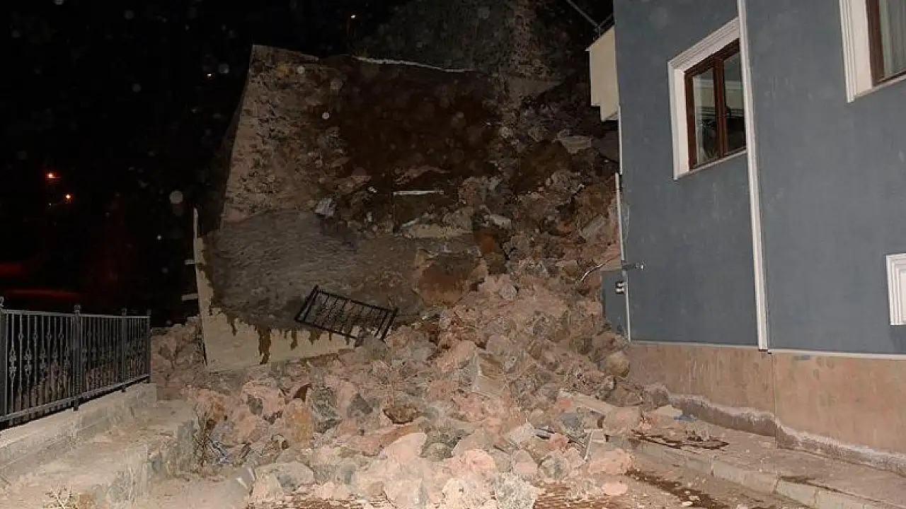 Merkeze bağlı Oltanbey Mahallesi'ndeki Altınpark Sitesi'nin arkasında bulunan istinat duvarının bir bölümü binaya doğru çöktü.