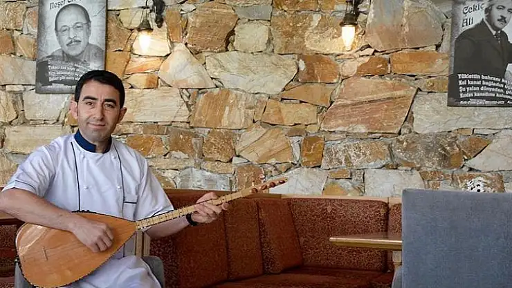 Kırşehir'de, gündüz tarihi konakta yöresel yemekler pişiren aşçı, geceleri sahnelerde müzik çalışması yaparak bestelediği türkü ve marşları geniş kitlelere duyurmaya çalışıyor.
