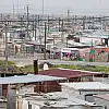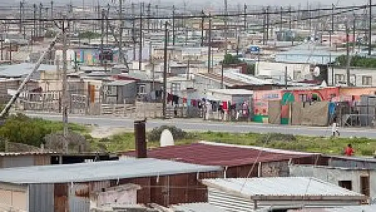 Tuvalet ve banyonun bulunmadığı teneke evlerde çamaşır iplerinden, elektrik tellerinden bir korkuluk gibi görünen ve ucu ufukta biten yoksul bir semt Khayelitsha.