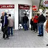 Vatandaşlar 260 avro limit konulan bankamatiklerin önünde gün boyunca büyük kuyruklar oluştururken, acil ihtiyaç dışındaki alışverişlerin durma noktasına geldiği bildiriliyor.