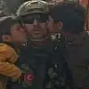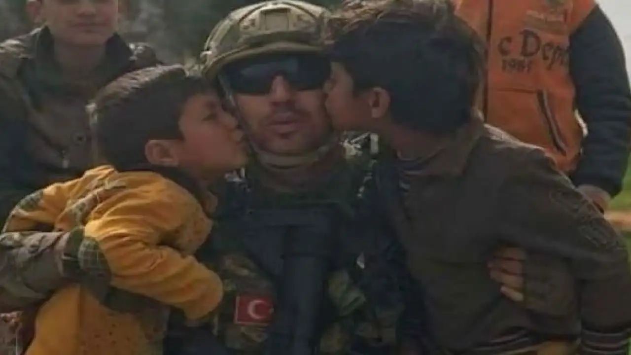 Fotoğrafta; teröristlerden temizlenen köydeki çocukların, Türk askerini büyük bir mutlulukla öptüğü görülüyor.