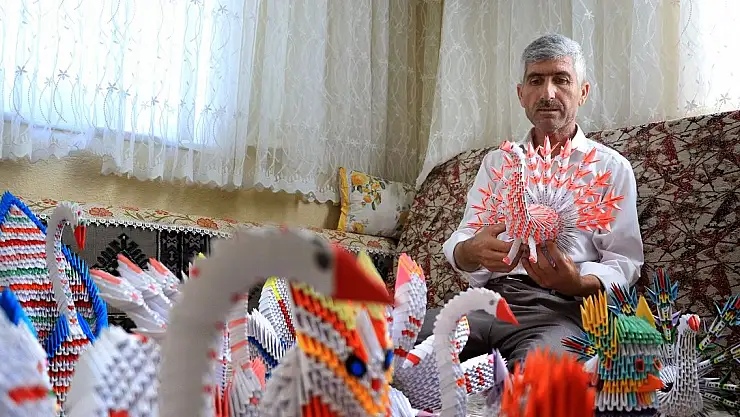Konya Ovası'ndaki bir kırsal mahallede çiftçilikle geçimini sağlayan Abdulkadir Arıcan'ın tarladan artakalan zamanında kağıt katlama sanatı origamiyle ortaya çıkardığı eserler en büyük mutluluğu oldu.