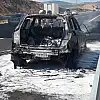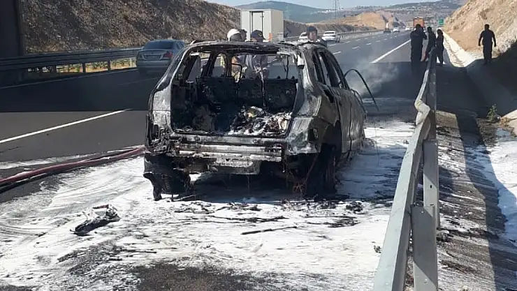 İzmir'in Aliağa ilçesinde, Kuzey Ege Otoyolu'nda gurbetçi ailenin içinde bulunduğu otomobil seyir halindeyken alev alıp yandı. Araç, yangın sonrası kullanılamaz hele geldi.