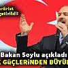 Terörle mücadele konusunda değerlendirmede bulunan ve son 10 ayda bin 400'ün üzerinde sığınak bulduklarını vurgulayan Bakan Soylu, "Terörle mücadele boyutu var. Tabi ki şunu yapacaklar; bizi etrafımızdaki ateş çemberinin içerisine koymaya çalışacaklar. Nerden geliyor bu PKK'nın silahları? Bin 400'ün üzerinde son 10 ayda sığınak aldık. 10 binlerce mühimmat, binlerce ton bomba, hazır nitrat, amonyum nitrat ve sadece Tunceli'de son 10 ayda 186 terörist o bölgede etkisiz hale getirildi. Ama bizim dost bildiklerimiz daha geçen hafta sınırlarımızın ötesinde bir araya geliyorlar, yeni planlar yapmaya çalışıyorlar. Bizi görmüyor zannediyorlar. Bizi anlamıyor zannediyorlar. Bütün dünyaya da başka masallar anlatıyorlar. Ne yaparlarsa yapsınlar, hepsi bir araya gelsinler. İster DEAŞ'i, ister FETÖ'yü, ister PKK'yı kullansınlar, ister DHKPC'yi kullansınlar. Bu milletin iradesini yenemeyecekler. İşte o kadar" diyerek konuşmasını noktaladı.