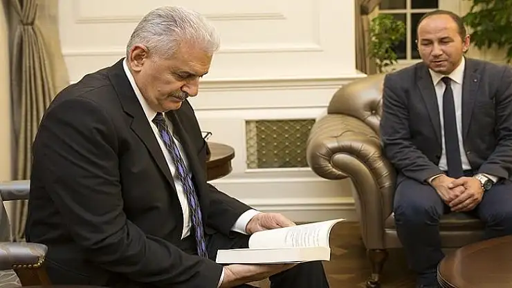 Başbakan Binali Yıldırım'a, 15 Temmuz gecesi görev yapan haber kameramanlarının yaşadıklarının anlatıldığı "kalkışMA" isimli kitap hediye edildi.