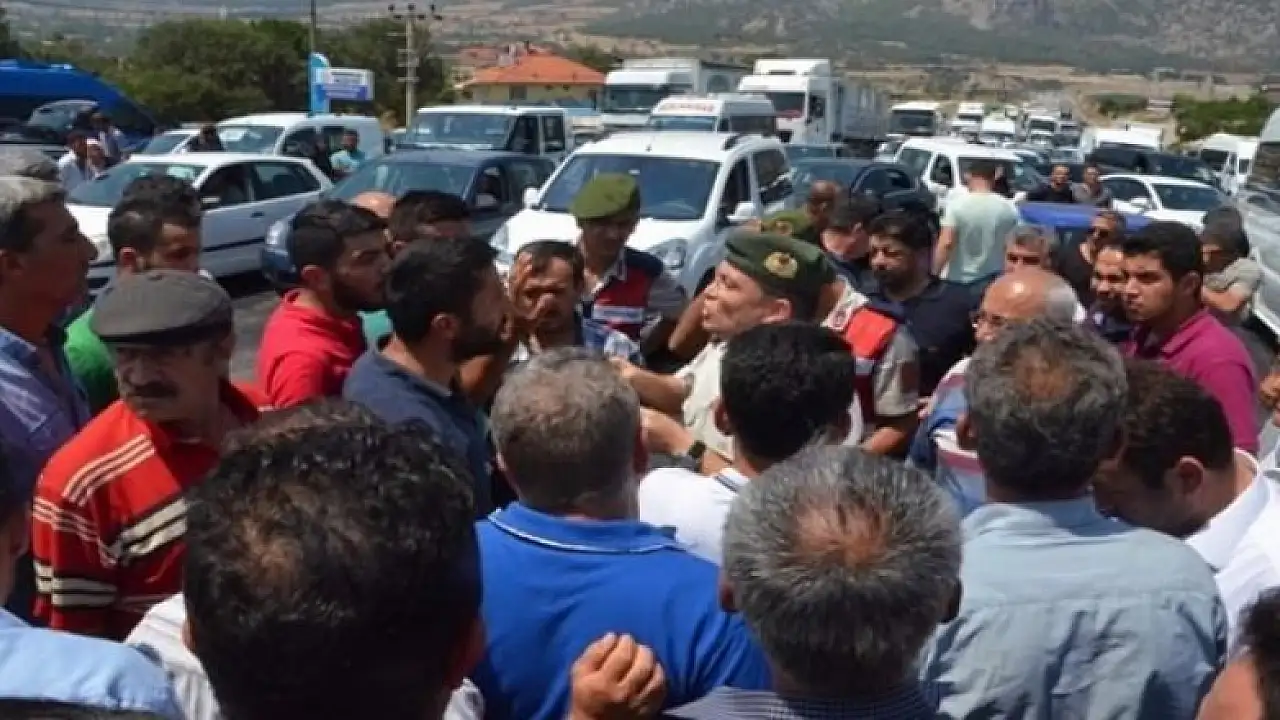 Yolda uzun araç kuyruğu oluşurken, jandarmanın ikna etmesi üzerine öfkeli kalabalık, 1 saat sonra eylemine son verip, yolu trafiğe açtı.