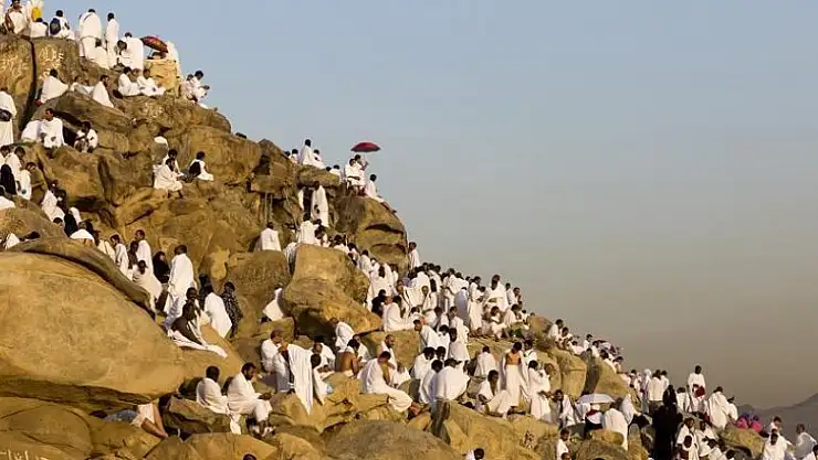 Beyaz ihramlarıyla Arafat'a bir araya gelen hacı adayları, Hz. Adem ile Hz. Hava'nın dünyada buluştuğu, Hz. Muhammed'in Veda hutbesini irat ettiği Cebel-i Rahme diye bilinen Rahmet Tepesi'ne çıktı.