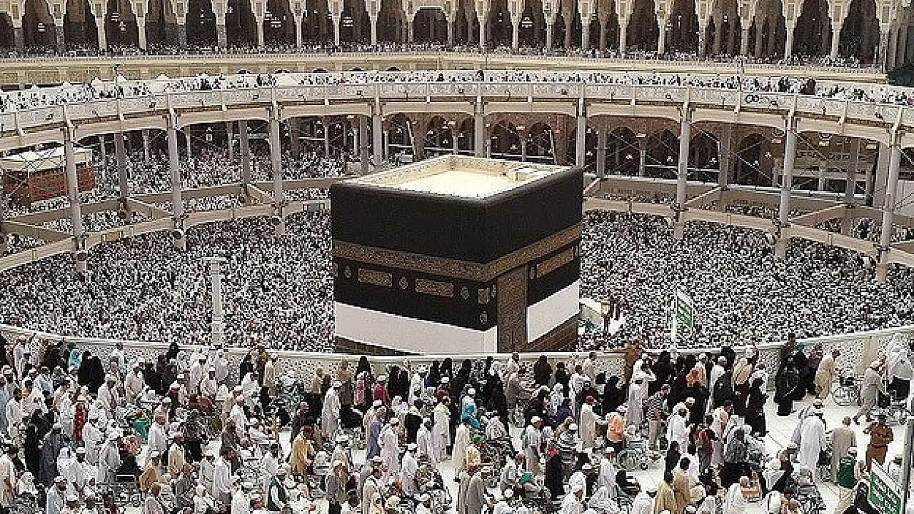 Kutsal topraklarda, hac ibadetini yerine getiren Müslümanlar, veda tavafı yapıyor.