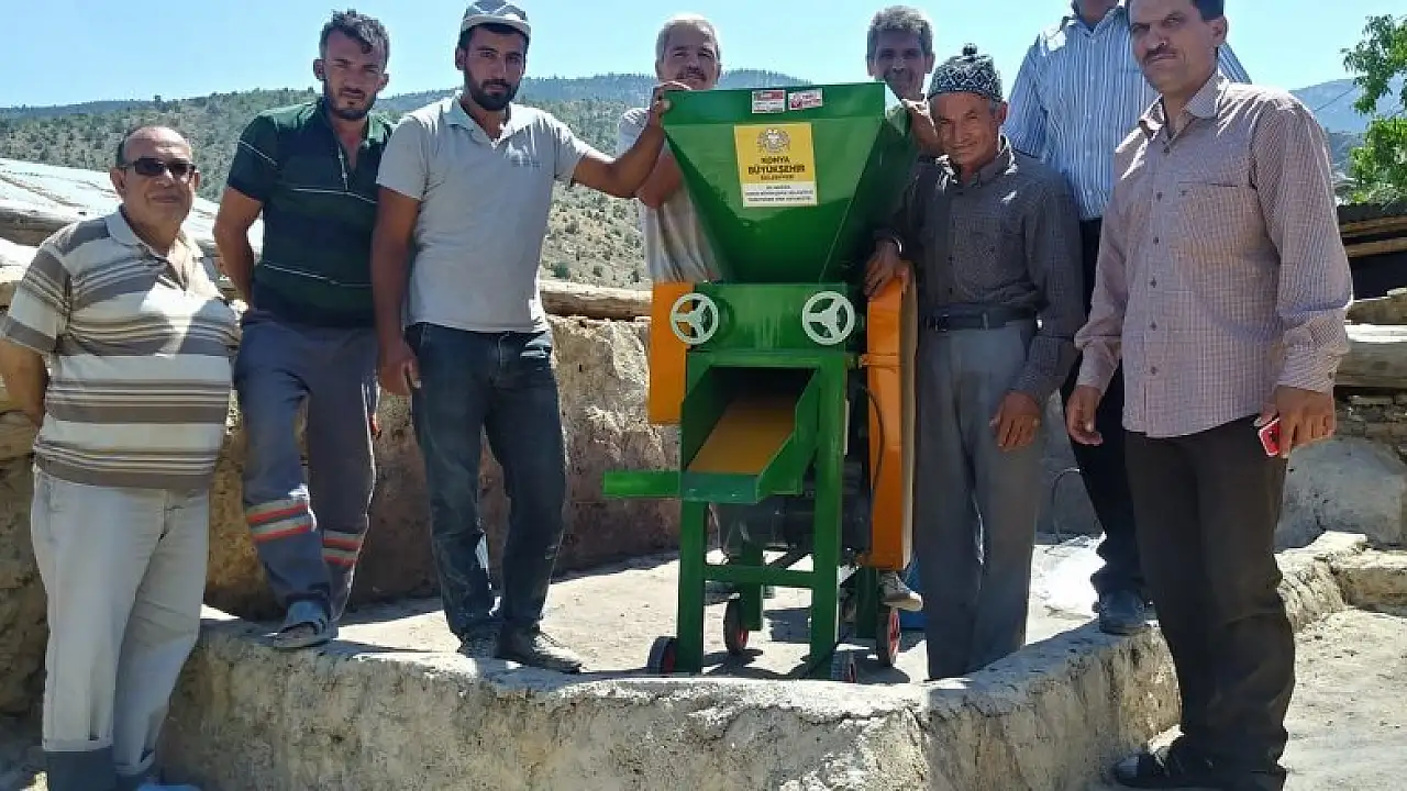 Hadim'de, Konya Büyükşehir Belediyesi tarafından sağlanan üzüm sıkma makineleri çiftçilere teslim edildi.