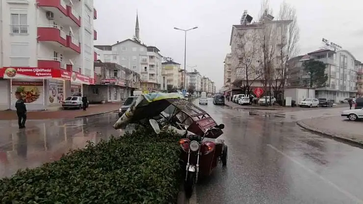 Hafif ticari araç 3 tekerlekli motosiklete çarptı