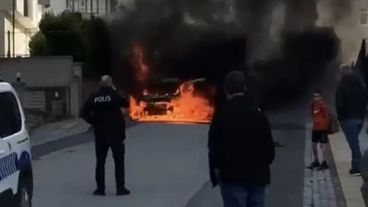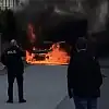 Yangında yaralanan olmazken araç kullanılamaz hale geldi. Hafif ticari aracın alev alev yanma anı cep telefon kamerasına yansıdı.