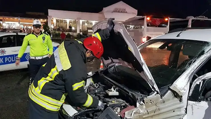 Hafif ticari araç benzin istasyonunun girişine çarpıp takla att