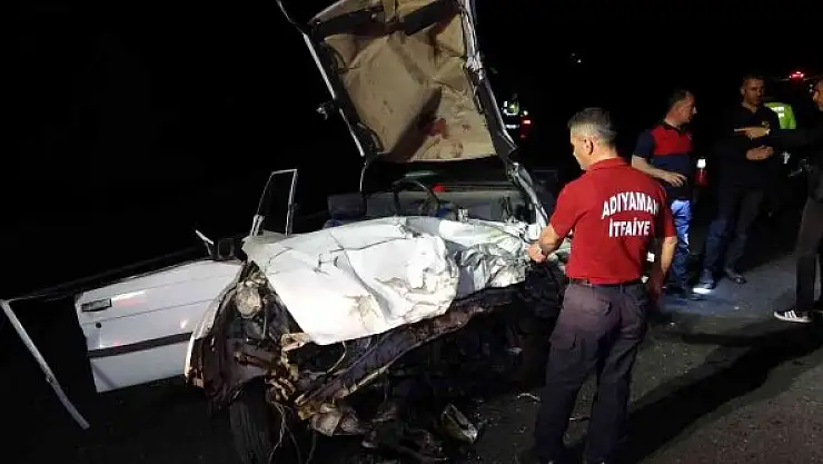 Adıyaman'da hafif ticari araç ile otomobilin çarpışması sonucu meydana gelen feci kazada 1 kişi hayatını kaybetti, 1 kişi yaralandı.