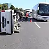 BAHÇELİEVLER'de, alkollü olduğu iddia edilen sürücünün kullandığı hafif ticari araç, şerit değiştirirken kontrolünü kaybederek otomobile çarpıp yan yattı.