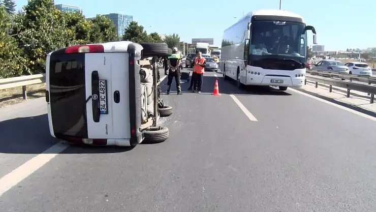 BAHÇELİEVLER'de, alkollü olduğu iddia edilen sürücünün kullandığı hafif ticari araç, şerit değiştirirken kontrolünü kaybederek otomobile çarpıp yan yattı. Kazada, 3 kişi yaralandı.