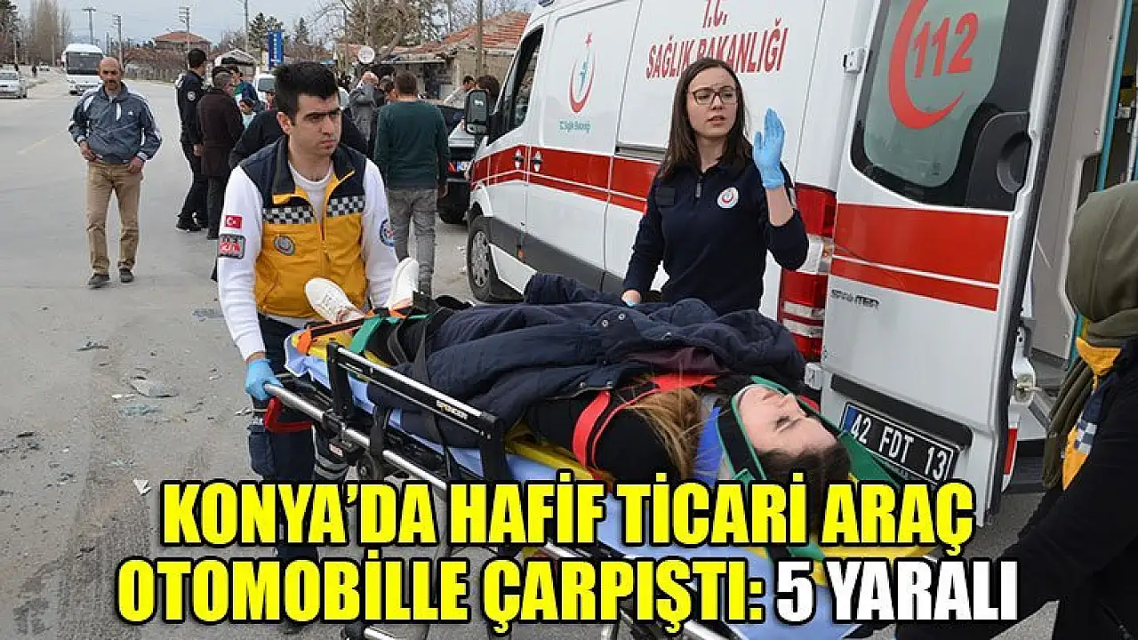 KONYA'nın Ereğli ilçesinde hafif ticari aracın, kavşakta otomobille çarpışması sonucu meydana gelen kazada 5 kişi yaralandı.