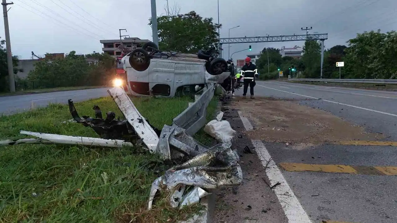 Samsun'da refüjdeki bariyere çarpıp takla atan araçta bulunan 2 kişi yaralandı.