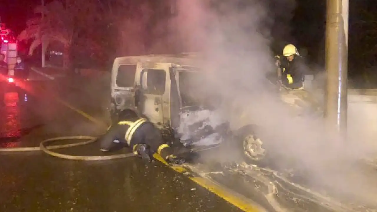 Hafif ticari araçta çıkan yangın ormana sıçramadan söndürüldü
