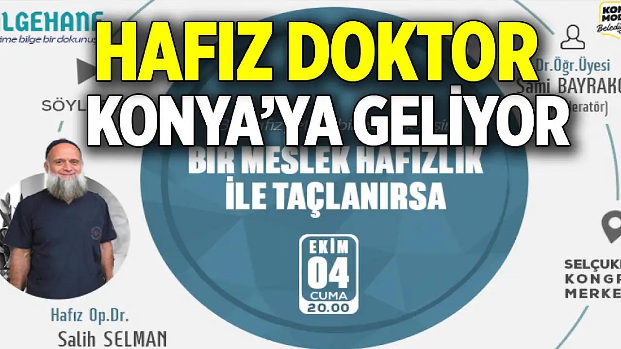Operatör doktor ve aynı zamanda hafız olan Opr. Dr. Salih Selman Konya Büyükşehir Belediyesi tarafından düzenlenen 'Bir Meslek Hafızlık İle Taçlanırsa' konferansa katılacak.