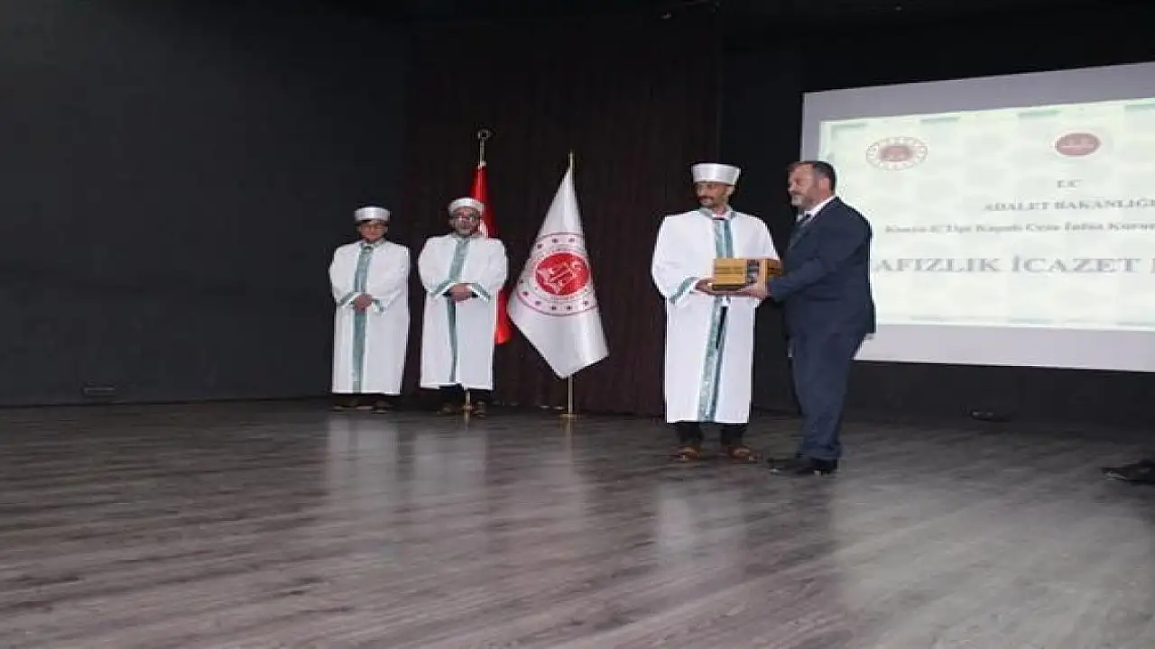 Konya İl Müftülüğü Cezaevi Vaizi Bahattin Ertunç rehberliğine Ceza İnfaz Kurumunda hafızlığını tamamlayan mahkumlar için Hafızlık İcazet Merasimi programı gerçekleştirildi.