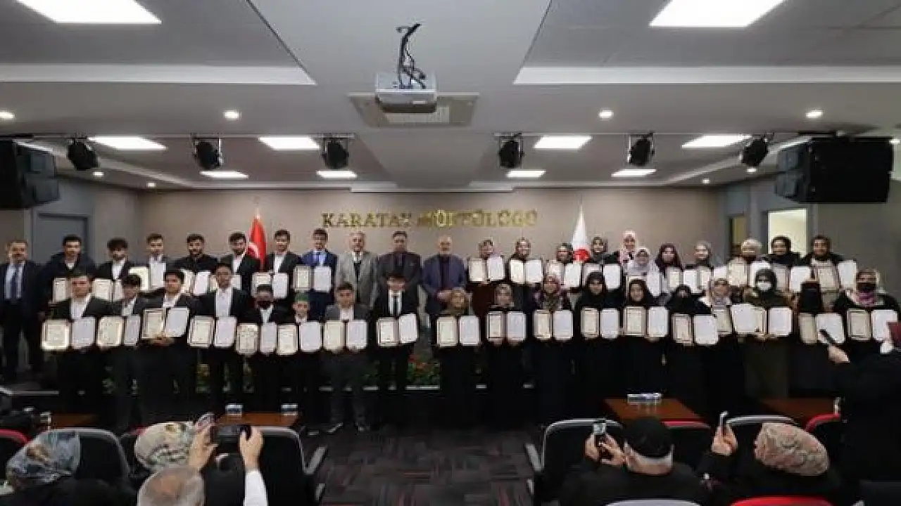 Diyanet İşleri Başkanlığı Eğitim Hizmetleri Genel Müdürlüğü tarafından yapılan 2022 yılı 1. Dönem hafızlık tespit sınavında başarılı olan hafız öğrenciler, Karatay İlçe Müftülüğü Konferans Salonunda düzenlenen programda belgelerini aldılar. Belge takdim töreni; Kur’an-ı Kerim tilaveti ile başladı ve ardından Karatay İlçe Müftüsü Musa İmamoğlu, hafızlık sınavında başarılı olan 42 öğrenciyi tebrik etti. İmamoğlu, öğrencilere bundan sonraki eğitim-öğretim hayatlarında başarılar dileyerek, kendilerini yetiştiren hocalarına ve hafızlık eğitimi boyunca onları madden ve manen destekleyen ailelerine de teşekkür etti.