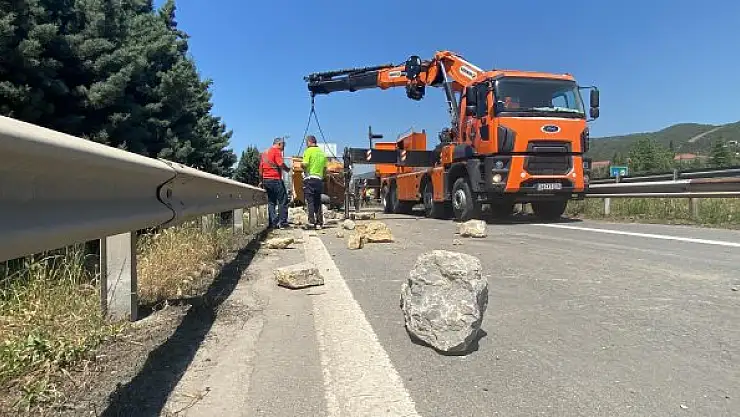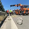 Hafriyat kamyonu bariyerlerin üzerine devrildi