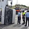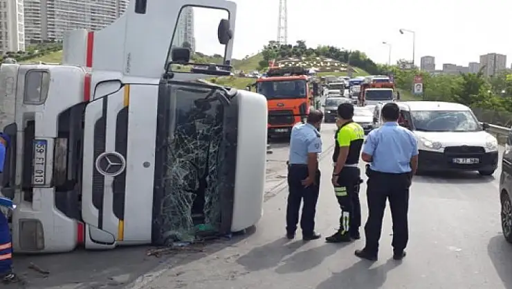 Kaza saat 10.00 sılarında Tem Otoyolu yan yol Altınşehir istikametinde meydana geldi. Edinilen bilgiye göre Sezer Aydın yönetimindeki 59 FT 013 plakalı hafriyat yüklü kamyon virajı alamayarak bariyerlere çarpıp devrildi. Kamyondaki toprak ve kayalar yola saçıldı.