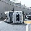 Hafriyat kamyonu devrildi