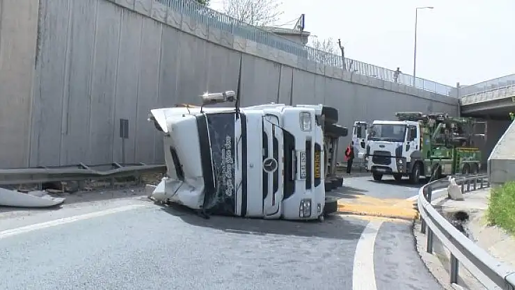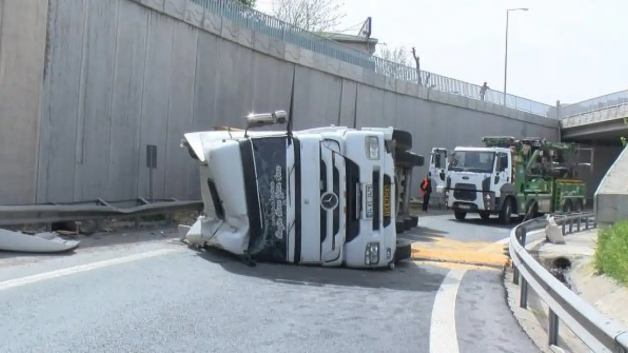 BÜYÜKÇEKMECE'de şoförünün direksiyon hakimiyetini kaybettiği hafriyat kamyonu devrildi.