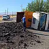 Hafriyat yüklü kamyon devrildi