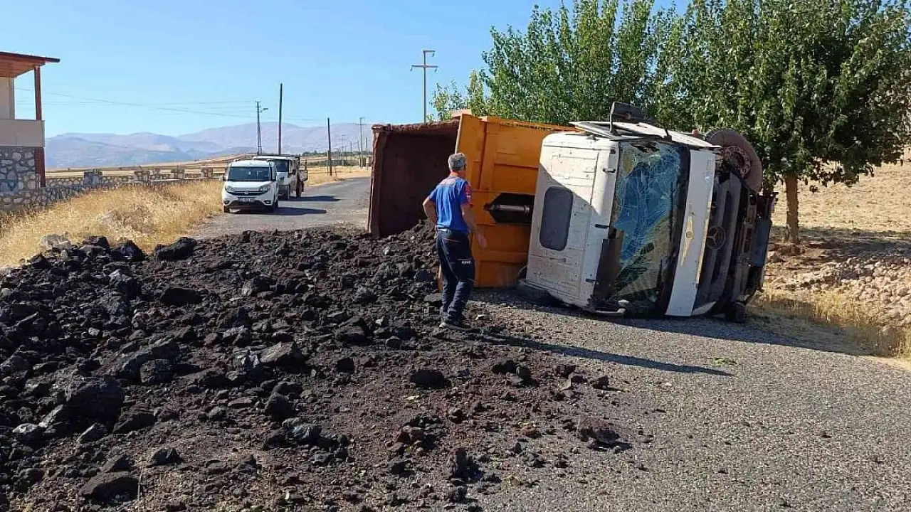 Adıyaman'da, hafriyat yüklü kamyon sürücüsünün direksiyon hakimiyetini kaybetmesi sonucu devrildi.