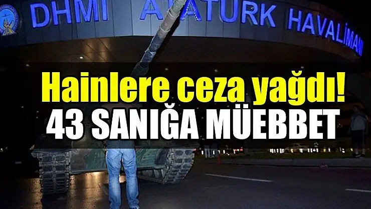 15 Temmuz darbe girişiminde Atatürk Havalimanı'nı işgal davasında 10 sanığa ağırlaştırılmış müebbet, 43 kişiye müebbet hapis cezası verildi.