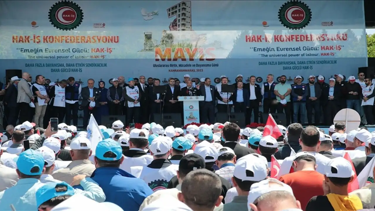 1 Mayıs Emek ve Dayanışma Günü dolayısı ile Hak-İş Konfederasyonu tarafından depremin merkez üssü Kahramanmaraş'ta "Emeğin Evrensel Gücü: Hak-İş" temasıyla etkinlik düzenlendi.