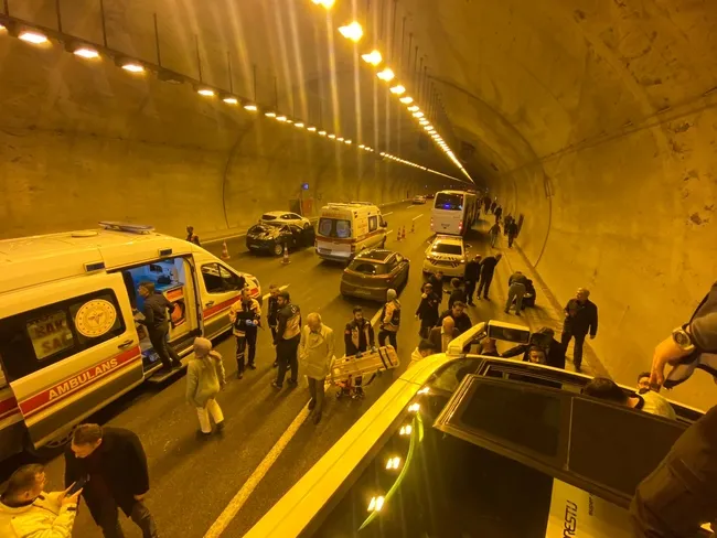 Kaza, 18.00 sıralarında Kuzey Marmara Otoyolu Başakşehir istikameti Cebeci Tüneli'nde meydana geldi. Edinilen bilgiye göre, 35 AFJ 453 plakalı otomobil seyir halindeyken aniden frene bastı. Ani fren nedeniyle otomobilin arkasından gelen ve Çağlayan Adliyesi personellerini taşıyan servis aracı, manevra yapamayarak çarptı. Çarpmanın etkisiyle servis aracı yan yattı. İhbar üzerine olay yerine polis, itfaiye ve sağlık ekipleri sevk edildi. Polis ekipleri çevrede geniş güvenlik önlemi alarak trafiği tek şeritten sağladı. Kazada yaralanan 4 kişi sağlık ekipleri tarafından ambulans ile çevredeki hastanelere sevk edildi. Yaralıların sağlık durumunun iyi olduğu öğrenilirken kazaya ilişkin polis ekipleri çalışma başlattı.