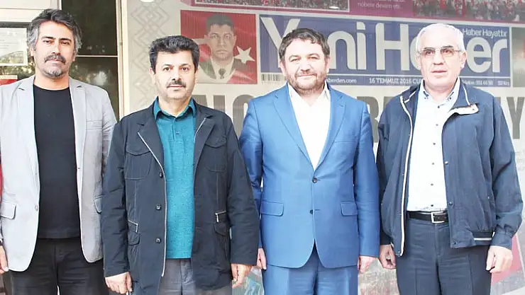 Yeni Haber'in 5. kuruluş yıl dönümünü Hâkimiyet Gazetesi İmtiyaz Sahibi Yusuf Gürbüz ve Yazı İşleri Müdürü Mustafa Uğurlu gazetemizi ziyaret etti