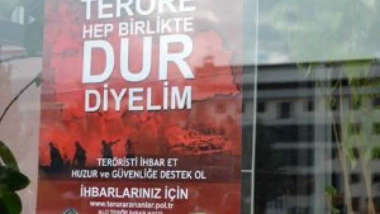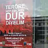Hakkari İl Emniyet Müdürlüğünce kamu binalarının pencerelerine 'Teröre hep birlikte dur diyelim. Teröristi ihbar et huzur ve güvenliğe destek ol' afişleri asıldı.