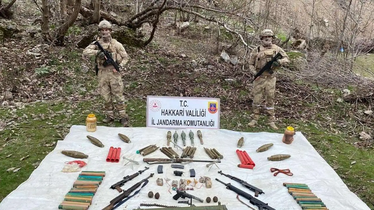 İÇİŞLERİ Bakanlığı, Hakkari'de PKK/KCK terör örgütüne ait çok sayıda silah ve mühimmat ele geçirildiğini duyurdu.