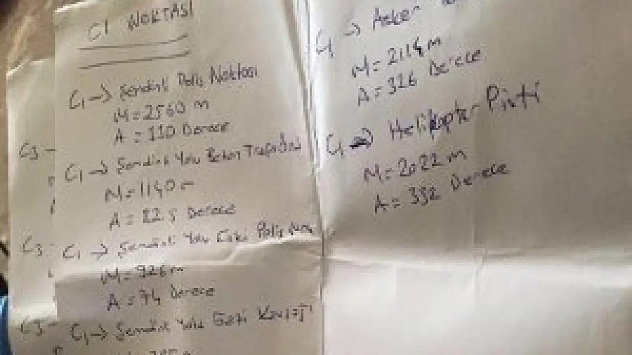 Polisevi, kaymakamlık konutu, İlçe Emniyet Müdürlüğü, tabur komutanlıklarının hizmet binaları, askerlerin koğuşları ve helikopter pistinin yanı sıra ilçedeki önemli yollarla ilgili notların yazılı olduğu kağıtta, bu noktalara yönelik olası saldırılarda kullanılmak üzere hazırlanan bilgiler yer alıyor.