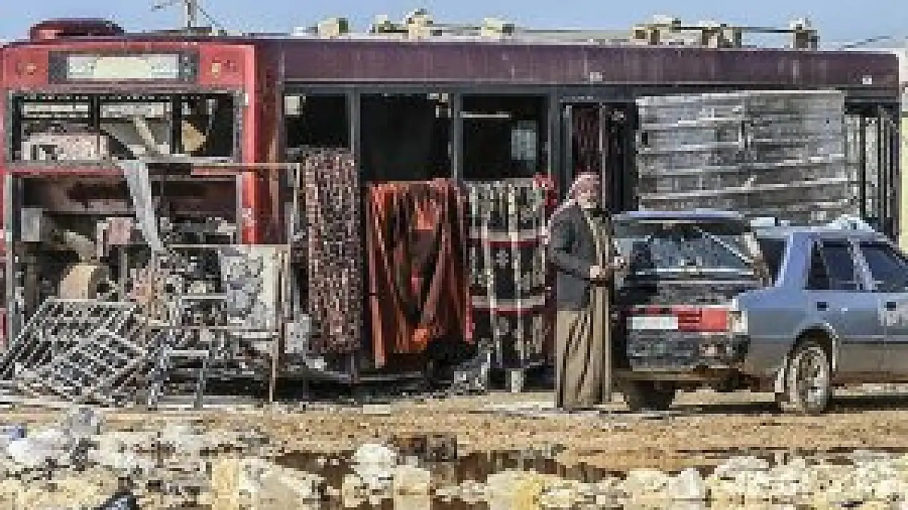 Rusların bombardımanından kaçarak çadır kente gelen bazı aileler araçlarında uyurken bir aile de terk edilmiş, camları kırık, kapıları olmayan bir otobüste kaldı.