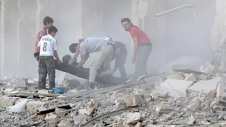 Suriye'de rejime ait helikopterler kuşatma altında bulunan Halep'in Sahur semtindeki sahra hastanesine varil bombasıyla saldırdı.