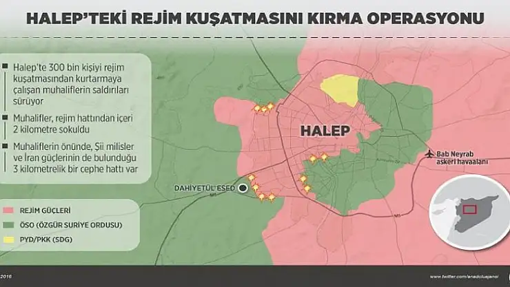 Muhalifler, ülkenin kuzeyindeki Halep'te kent merkezinin doğusunda devam eden rejim kuşatmasını kırmak için dün sabah saatlerinde büyük bir saldırı başlatmıştı.